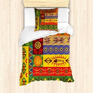 afrikanisch Bettbezug Set für Einzelbetten, Abstrakter ethnischer Stammes-, Milbensicher Allergiker geeignet mit Kissenbezug, Multi