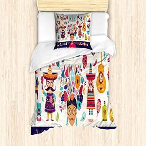 Cinco de Mayo Bettbezug Set für Einzelbetten, Mexikanische Kultur Kunst, Milbensicher Allergiker geeignet mit Kissenbezug, 135 cm x 200 cm - 80 x 80 cm, Mehrfarbig