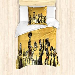 Dia De Los Muertos Bettbezug Set für Einzelbetten, Skelette Tanz, Milbensicher Allergiker geeignet mit Kissenbezug, 135 cm x 200 cm - 80 x 80 cm, Orange Taupe Grau