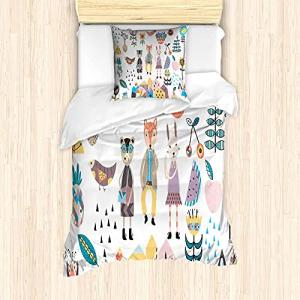 Karikatur Bettbezug Set für Einzelbetten, Fox Hase und Bär, Milbensicher Allergiker geeignet mit Kissenbezug, 135 cm x 200 cm - 80 x 80 cm, Mehrfarbig