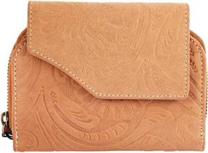 Damen Echtleder Geldbörse mit Blumenprint (Beige)