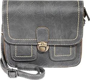 Unisex-Schultertasche Leder Reißverschluss Grau Druckknopf Handyfach 24 x 23 x 2,5 3900028