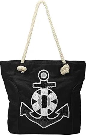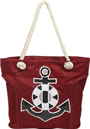 Damen Shopper / Strandtasche Anker Motiv Elegant Groß Geräumig Textilstoff 43x35x20 cm - 3600002-004