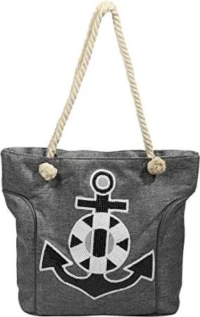 Damen Shopper / Strandtasche Anker Motiv Elegant Groß Geräumig Textilstoff 43x35x20 cm - 3600002-001