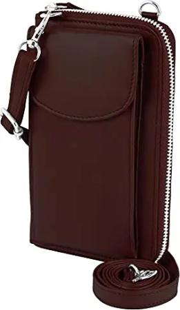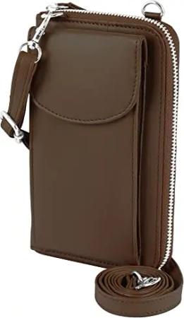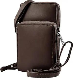 Unisex-Handy Umhängetasche unter 9 Zoll Leder mit Geldbörse 19x12x4,5cm 3900026 (dunkelbraun)