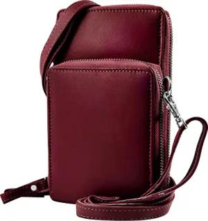 Unisex-Handy Umhängetasche unter 8 Zoll Leder 18,5x9,5x2cm 3900027 (Bordeaux)