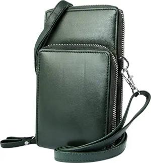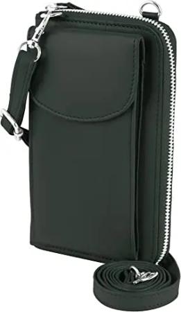 Unisex Handy Umhängetasche Geldbörse Leder 9 Zoll 19,5 x 12 x 4 cm 3900060 (dunkelgrün)