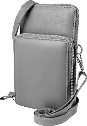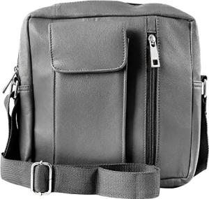 Unisex Handy Umhängetasche Geldbörse Leder 9 Zoll 19,5 x 12 x 4 cm 3900060 (hellgrau)