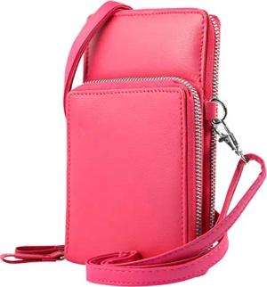 Unisex-Handy Umhängetasche unter 9 Zoll Leder mit Geldbörse 19x12x4,5cm 3900026 (pink)