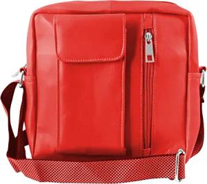 Unisex-Schultertasche Leder Rot Reißverschluss Druckknopf Handyfach 3900028