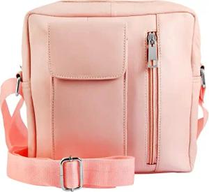 Unisex-Schultertasche Rosa Leder Reißverschluss Druckknopf Handyfach 3900028