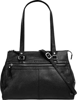 Umhängetasche Kunstfaser Damen | Leder Shopper, Praktische Crossbody Tasche, 1 Smartphonefach, 5 Fächer schwarz | 022009