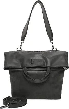 Fritzi Izzy Medium Leaves Canvas Anthra Ice Shopper Damen Leichte Große Handtasche Einkaufstasche Alltag City mit Reißverschluss verstellbarem Schultergurt 42 x 36 x 15 cm, 22 Liter, Anthrazit