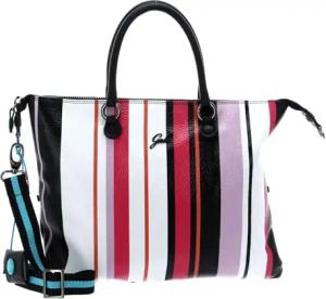 Schultertasche Shopper Nora TG Paglia Rigata + Naplak Shoulderbag Grafite bunt