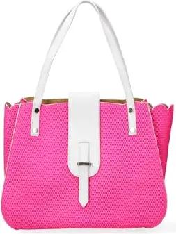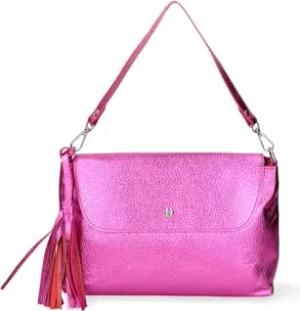 Damen Schultertasche aus Echtleder Fuchsia 38 x 30 x 12 cm