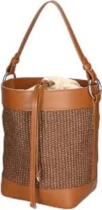 Damen-Eimertasche mit Kordelzug. Ausgestattet mit abnehmbarem und austauschbarem Griff mit einem Schultergurt. Italienisches Kunsthandwerk aus echtem Leder und Stroh. Made Italy GLX220516523FBG 18 x