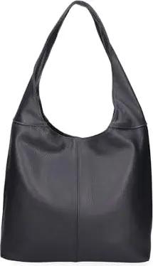 Damen Schultertasche Echtleder Magnetverschluss 31x18x12 cm Schwarz