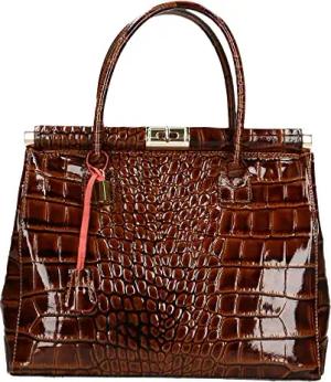 Damen Schultertasche aus italienischem Echtleder mit Krokodil-Prägung, Bordeaux, 31 x 18 x 12 cm