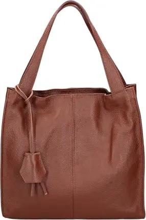 GLX22777623FBG-PARENT Damen-Schultertasche aus echtem Leder Made in Italy 27 x 38 x 21,5 cm, dunkelbraun