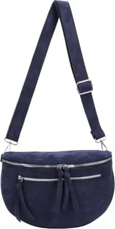 Damen Tasche Gürteltasche Crossbody Leder Optik Hüfttasche Bauchtasche Umhängetasche Cross-Over Bodybag Schultertasche Handytasche Wildleder Dunkelblau XL