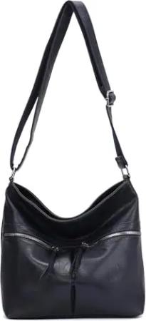 Damen Tasche Umhängetasche Crossbody Shopper Schultertasche Hobo Bag Beuteltasche Crossover Handtasche City Bag Henkeltasche Reise Leder Optik Schwarz