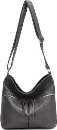 Damen Tasche Schultertasche Umhängetasche Crossbody Shopper Henkeltasche Crossover CrossBag Damentasche Reisetasche Beuteltasche City Bag Leder Optik Dunkelgrau