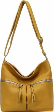 Damen Tasche Schultertasche Umhängetasche Crossbody Shopper Henkeltasche Crossover CrossBag Damentasche Reisetasche Beuteltasche City Bag Leder Optik Senfgelb