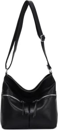 OBC DAMEN TASCHE Umhängetasche Schultertasche Shopper Crossbody Henkeltasche CrossOver Kunstleder Beuteltasche Handtasche Hobo Bag Reise Schwarz