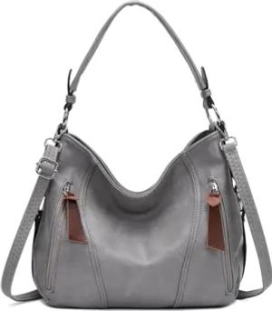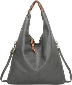 OBC Damen Tasche Shopper Hobo-Bag Schultertasche Leder Optik Umhängetasche Handtasche Crossover Reisetasche Beuteltasche Handtasche Hellgrau