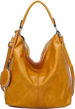 OBC Damen Tasche Shopper Schultertasche Umhängetasche Crossbody Hobo Bag Henkeltasche Beuteltasche Crossover Handtasche City Bag Reise Leder Optik Gelb