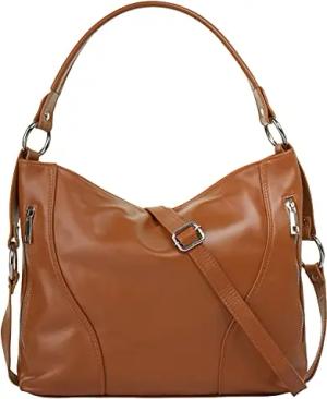 Umhängetasche echt Leder Damen | Made in Italy, geräumige Handtasche mit Schultergurt & Tragehenkel | 021414
