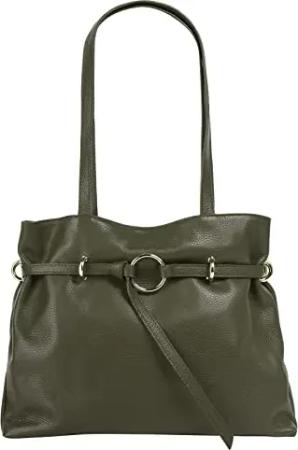 Umhängetasche echt Leder Damen | Made in Italy, moderne Schultertasche, geräumiger Shopper mit Schultergurt aus Leder | 022170