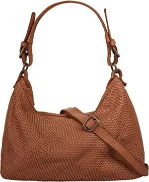 Umhängetasche echt Leder Damen | Made in Italy, Verspielte Handtasche mit Flechtoptik, Rückfach für wichtige Dokumente und Reißverschluss | 021377