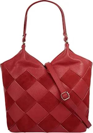 Umhängetasche echt Leder Damen | Made in Italy | Patchwork Shopper | geräumige Handtasche mit Flechtdesign | 021211