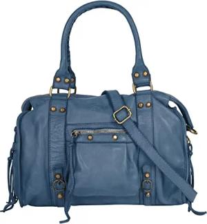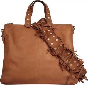 Umhängetasche echt Leder Damen | Made in Italy | Handtasche mit Metallnieten | 3in1 Weekender mit Smartphonefach | 022210