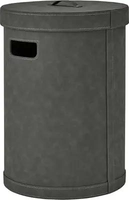 Wäschesammler -SAHLA- | Wäschekorb mit Deckel | Ø 35 x 51H cm | 50 Liter | Farbe Pewter | Wäschebox aus Leder