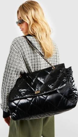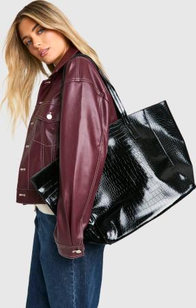 Oversize Kunstleder Kroko-Tasche - Schwarz - One Size, Schwarz