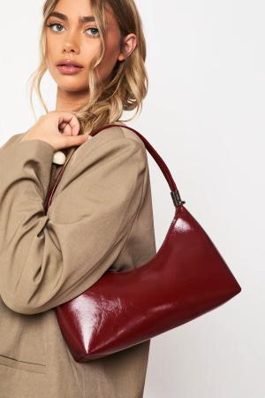 Glänzende Pu-Schultertasche Mit Umhängetasche - Burgundy - One Size, Burgundy