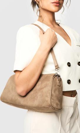 Lässige Schultertasche Aus Wildlederimitat - Taupe - One Size, Taupe