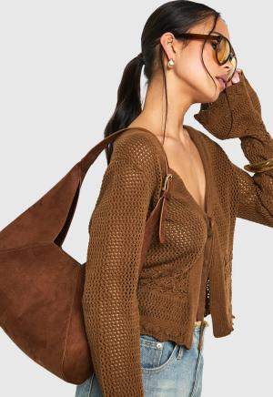Womens Cargo Detail Shoulder Bag - Chocolate - One Size, Chocolate