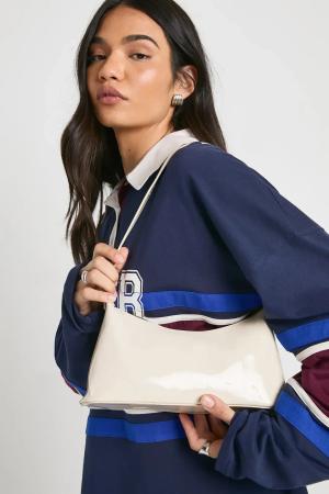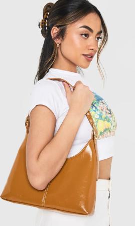 Womens High Shine Shoulder Bag - Taupe - One Size, Taupe