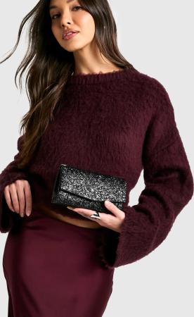 Strukturierte Glitzer-Clutch Mit Kette - Schwarz - One Size, Schwarz