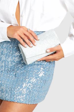 Womens Metallic Structured Clutch Bag - Silver - One Size, Silver