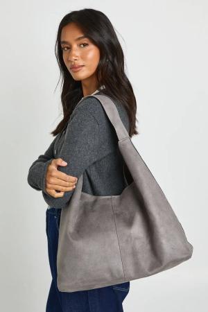 Womens Faux Suede Slouchy Tote Bag - Grey - One Size, Grey