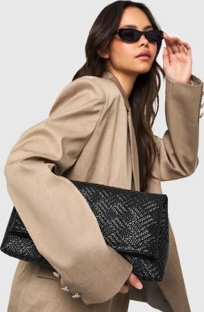 Womens Textured Fold Over Clutch Bag - Black - One Size, Black