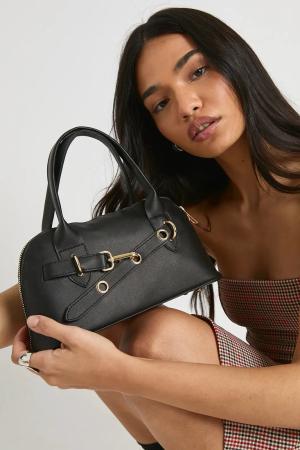Womens Double Buckle Detail Bowling Bag - Navy - One Size, Navy