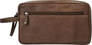 Kulturtasche Echt Leder Herren | Rindleder Kulturbeutel, Kosmetiktasche für Reisen, Waschtasche zum Aufhängen, Necessaire mit Reißverschluss | 021128