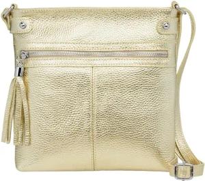 lässige Umhängetasche Echt Leder Crossbody Bag mittelgroße Damen Handtasche mit viel Stauraum - CLASSIC LINE - Modell No.833 - Made in Italy, Farbe:gold metallic