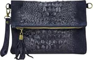 Handtasche Echt Leder Damen | Made in Italy, Smartphonefach, Kroko Umhängetasche, Damentasche aus Rindleder, Crossbody Bag mit Reißverschluss | 021322