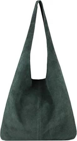 OBC Made IN Italy Damen Leder Tasche Handtasche Wildleder Shopper Schultertasche Hobo-Bag Henkeltasche Beuteltasche Velourleder (Grün (Wildleder))